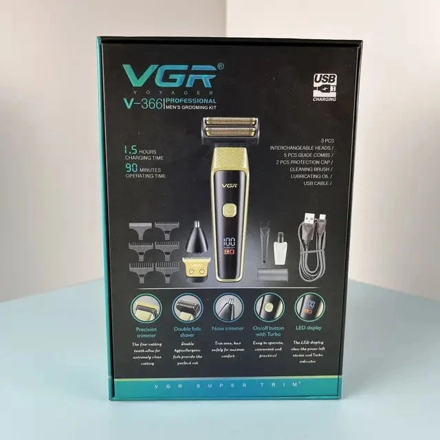 ⭐ ویژگیهای ست ماشین اصلاح موی صورت و بدن وی جی آر مدل ۳۶۶: