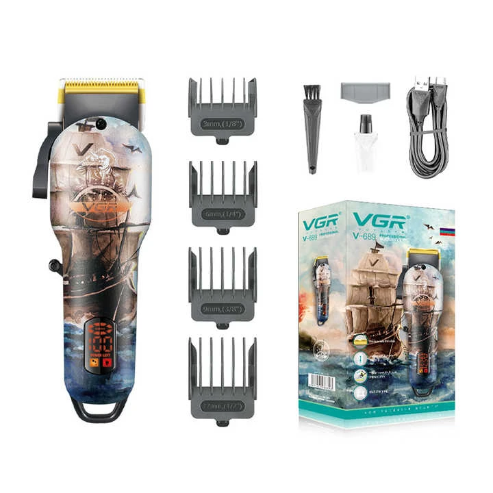 ماشین اصلاح موی سر VGR مدل 689 با تیغه استیل ضد زنگ، اصلاح صفر زن، طراحی ارگونومیک و باتری قوی با ۴ ساعت استفاده مداوم.